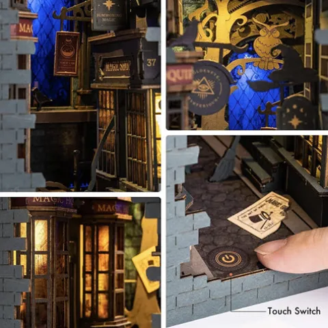 The new range of DIY Book Nooks from Robotime/Rolife are some of our most popular yet! Designed to slot between books on your bookshelf, these miniature worlds truly look magical. This kit comes with everything you need to create your very own magical alley, complete with shops to buy all your essential equipment.