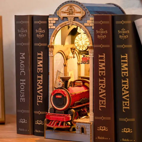 Time Travel Booknook – a magical train ready to explore time, something that will look amazing on your bookshelf.