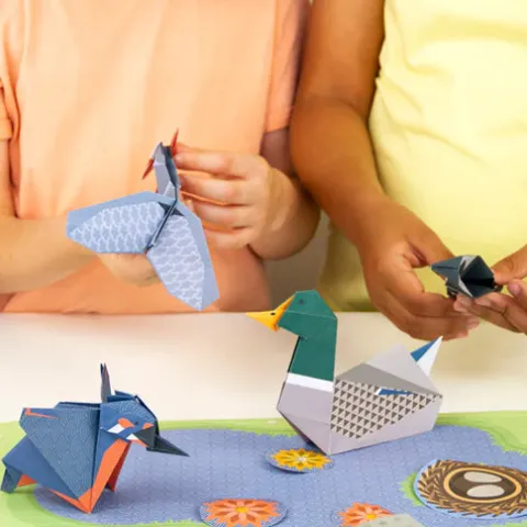 Create this stunning habitat and six different birds to sit within it. This charming origami set shows you all the basic folds and techniques, using patterned papers to make the folds easier to find. Once finished, you will have an environment you can learn about and a fantastic display.